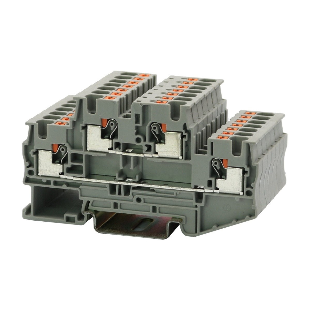 Двухъярусные клеммы, номинальное напряжение: 500 В, номинальный ток: 26 A, тип подключения: зажимы Push-in, расчетное сечение: 4 мм², сечение: 0,2 мм² - 6 мм², тип монтажа: NS 35/7,5, NS 35/15, цвет: серый
