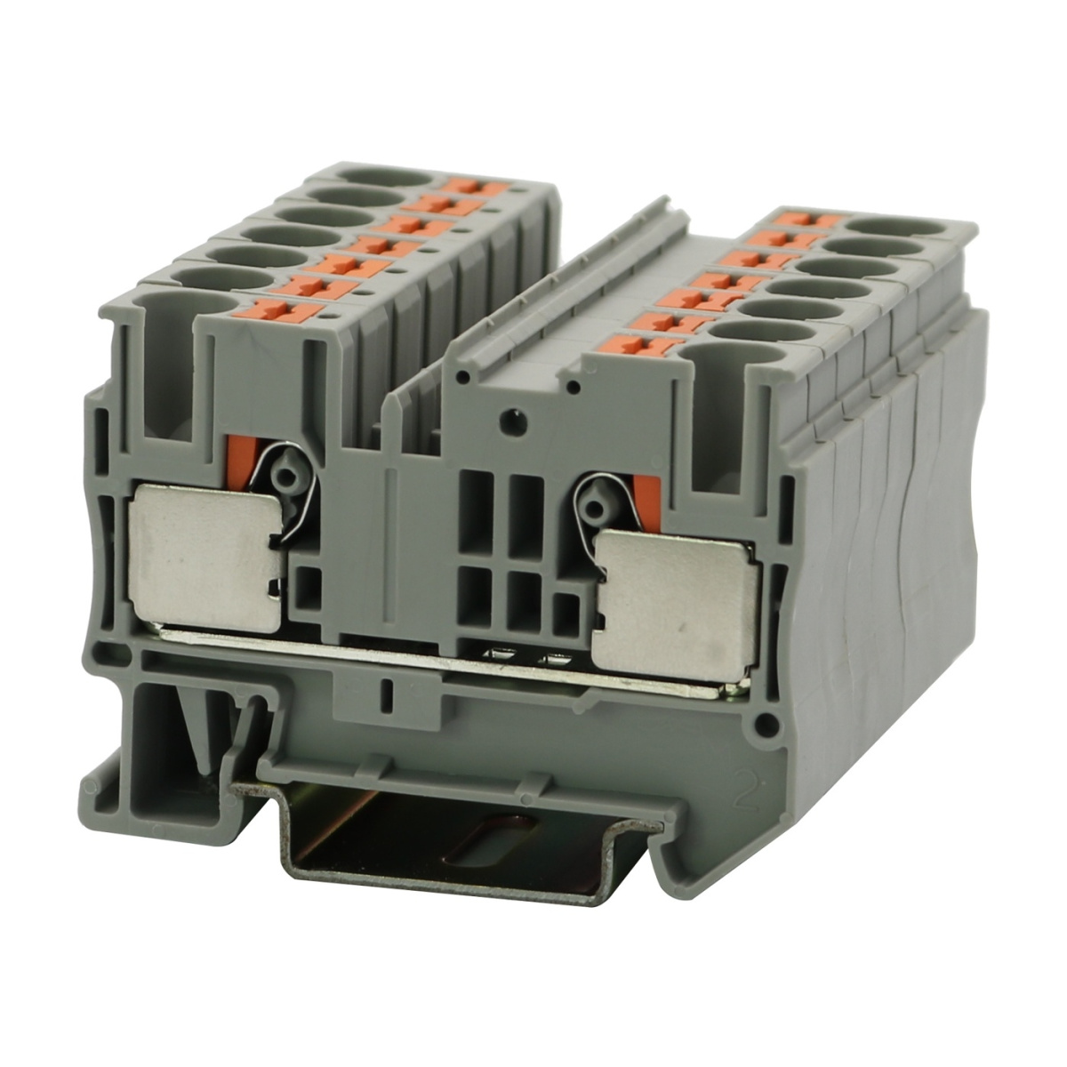 Проходные клеммы, номинальное напряжение: 1000 В, номинальный ток: 41 A, тип подключения: зажимы Push-in, 1 уровень, расчетное сечение: 6 мм², сечение: 0,5 мм² - 10 мм², тип монтажа: РМ-35/7,5, РМ-35/15, цвет: cерый