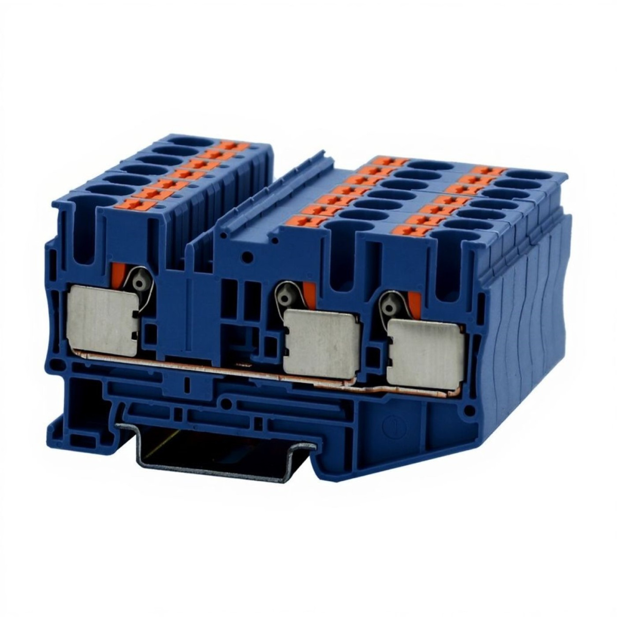 Проходные клеммы, номинальное напряжение: 1000 В, номинальный ток: 41 A, тип подключения: зажимы Push-in, 1 уровень, расчетное сечение: 6 мм², сечение: 0,5 мм² - 10 мм², тип монтажа: РМ-35/7,5, РМ-35/15, цвет: синий