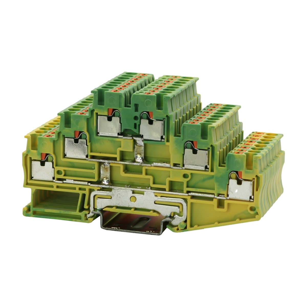 Заземляющая клемма, 3 уровня, 6 контактов, тип подключения: зажимы Push-in, расчетное сечение: 2,5 мм², сечение: 0,2 мм² - 4 мм², тип монтажа: РМ-35/7,5, РМ-35/15, цвет: желто-зеленый