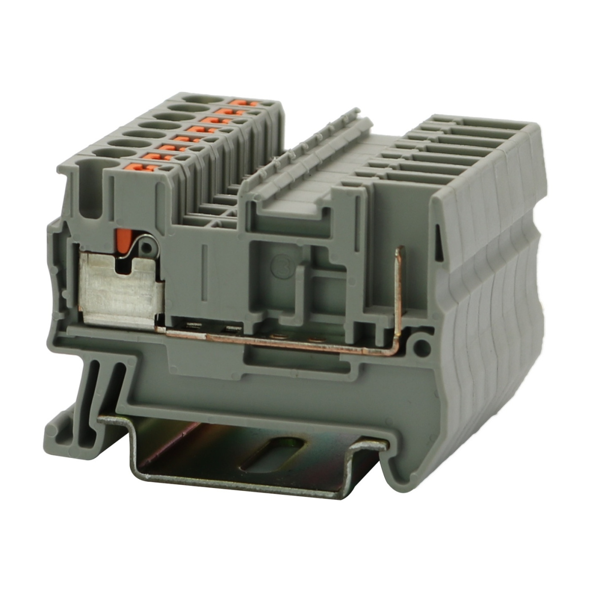Проходные клеммы с разъемным подключением, номинальное напряжение: 500 В, номинальный ток: 24 A, тип подключения: разъемное подключение / Push-in, расчетное сечение: 2,5 мм², сечение: 0,2 мм² - 4 мм², тип монтажа: РМ-35/7,5, РМ-35/15, цвет: cерый