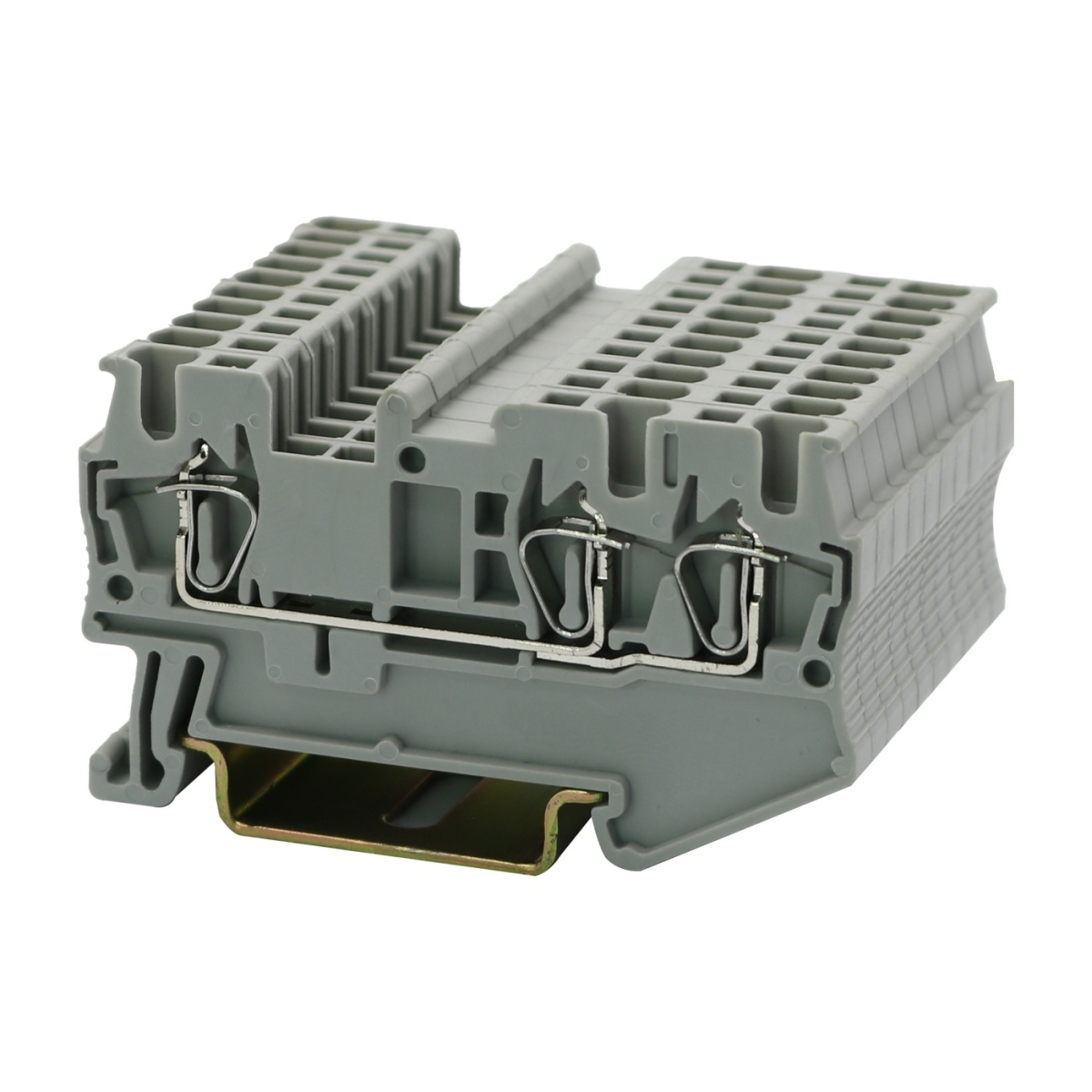 Проходные клеммы, номинальное напряжение: 500 В, номинальный ток: 17,5 A, тип подключения: пружинный зажим, расчетное сечение: 1,5 мм², сечение: 0,2 мм² - 1,5 мм², тип монтажа: РМ-35/7,5, РМ-35/15, цвет: cерый