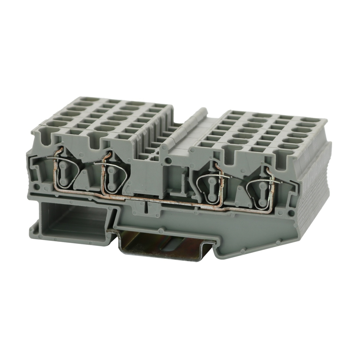 Проходные клеммы, количество точек подсоединения: 4, номинальное напряжение: 800 В, номинальный ток: 40 A, тип подключения: пружинный зажим, 1 уровень, расчетное сечение: 4 мм², сечение: 0,2 мм² - 6 мм², тип монтажа: РМ-35/7,5, РМ-35/15, цвет: серый