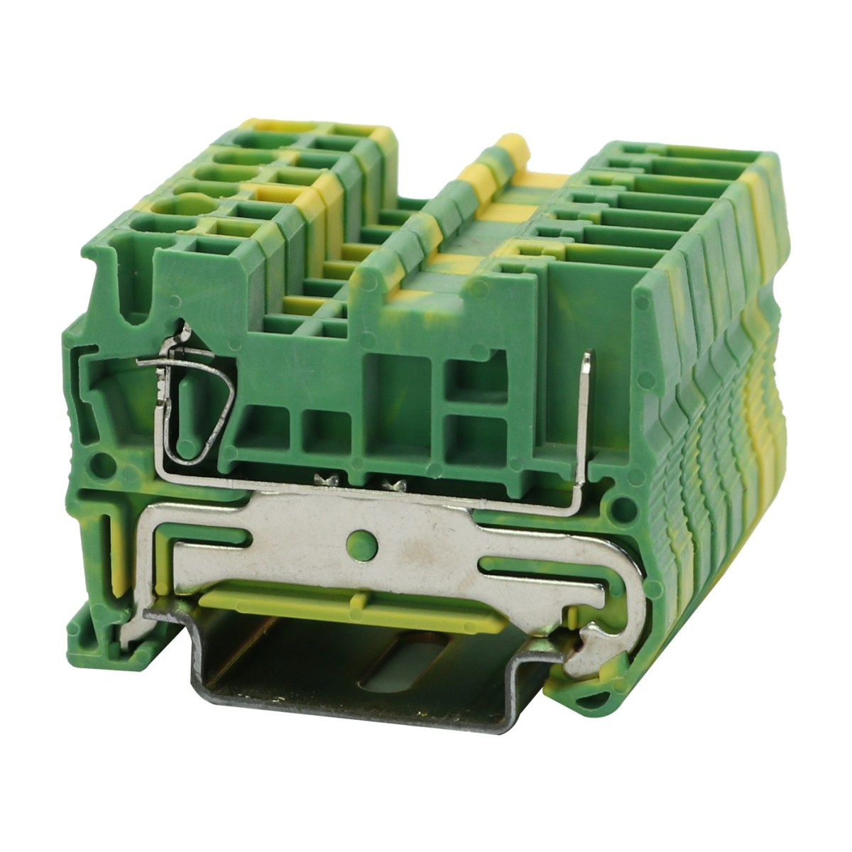 Заземляющая клемма с пружинными зажимами, количество точек подсоединения: 2, тип подключения: штекерное соединение / пружинный зажим, 1 уровень, подключение слева, сечение: 0,2 мм² - 4 мм², 1 уровень, подключение справа, тип монтажа: РМ-35/7,5, РМ-35/15, цвет: желто-зеленый