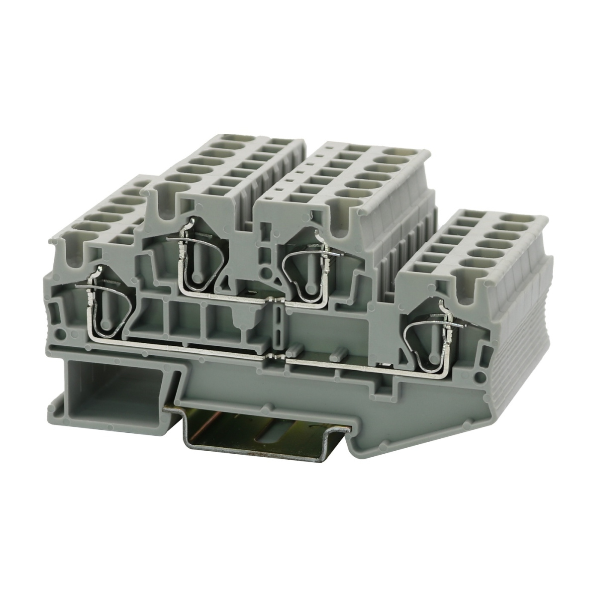 Двухъярусная пружинная клемма, номинальное напряжение: 500 В, номинальный ток: 32 A, тип подключения: пружинный зажим, 2 уровня, расчетное сечение: 4 мм², сечение: 0,2 мм² - 6 мм², тип монтажа: РМ-35/7,5, РМ-35/15, цвет: серый