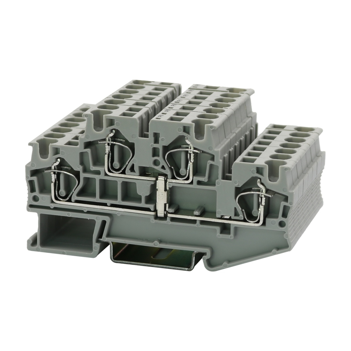 Двухъярусные клеммы, с потенциальным разъемом, номинальное напряжение: 500 В, номинальный ток: 32 A, тип подключения: пружинный зажим, 2 уровня, расчетное сечение: 4 мм², сечение: 0,2 мм² - 6 мм², тип монтажа: РМ-35/7,5, РМ-35/15, цвет: cерый