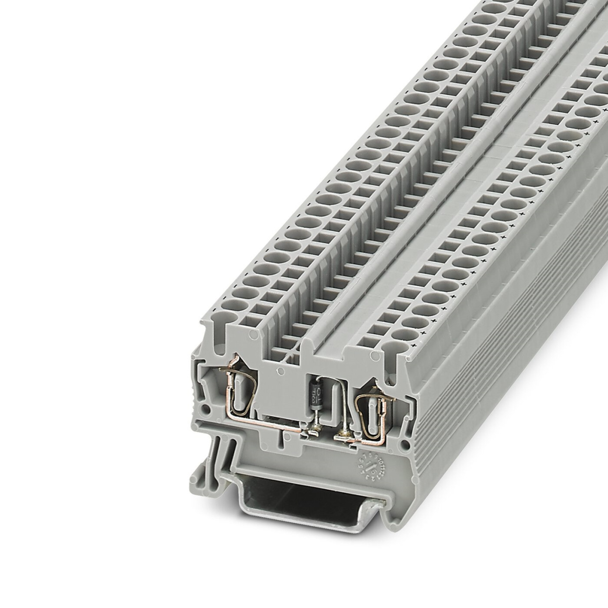 Сертификат СТ-1. Клеммный блок, со встроенным диодом 1N4007, номинальное напряжение: 800 В, номинальный ток: 0,5 A, 1 уровень, тип подключения: пружинный зажим, расчетное сечение: 1 мм², сечение: 0,2 мм² - 4 мм², монтаж: РМ-35/7,5, РМ-35/15, цвет: серый